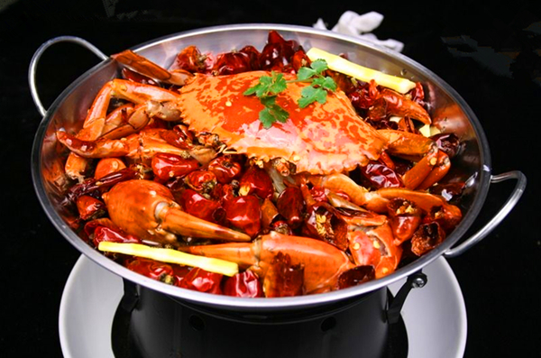 原料:螃蟹1800克、色拉油500克、生姜50克、大蒜50克、大葱50克、花椒15克、干尖椒25克、桂皮10克、八角4个、盐适量、鸡精一小匙、料酒80克、海鲜酱一大勺、麻辣酱一大勺、红辣椒粉一大勺