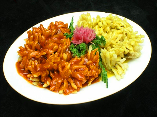 原料:黄鱼、香菜、橙汁、茄汁、糖、醋、生粉