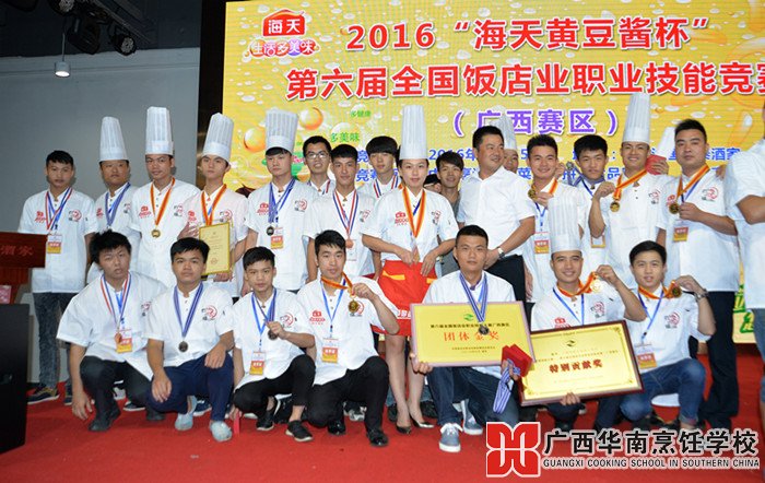 6月5日,2016“海天黄豆酱杯”第六届全国饭店业职业技能竞赛(广西赛区)正式落下帷幕,广西华南烹饪学校作为广西饭店业知名教育品牌,共21名师生参加比赛,他们分别参加了,热菜、雕刻、冷拼、西餐等项目的比赛。经过两天的角逐,我校获得团体金奖两枚,在校学生分获得5金、4银、3铜的好成绩。此外,我校另有4名毕业生代表所工作的酒店进行参赛,也同样取得了4金、2银的好成绩。