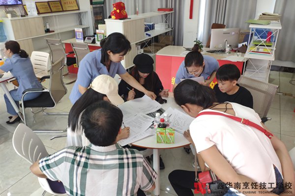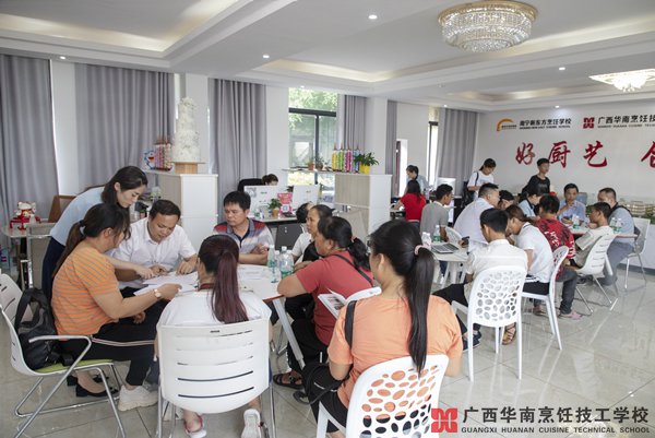中考刚落下帷幕,广西华南烹饪咨询大厅新一周已经是热闹非凡,周一就迎来了众多家长和新生。中高考结束,又到了秋季学厨火热报名阶段,趁这几天气温不那么燥热,家长们带着自己的孩子上门了解。