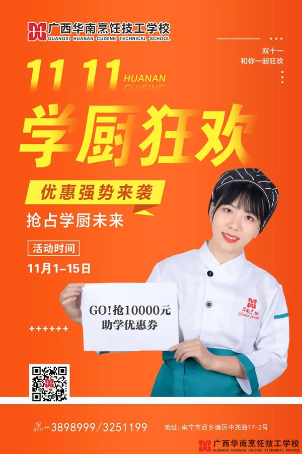 广西华南烹饪“双11”各项福利来啦!
